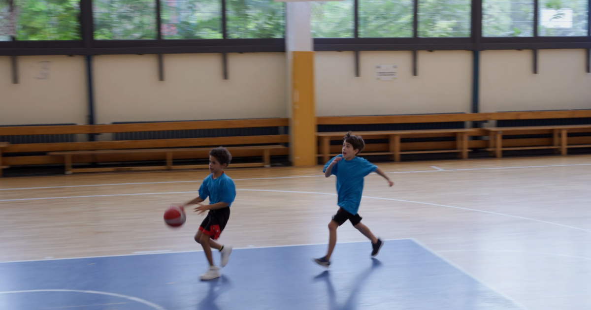 Beim Spiel „Verfolger-Korbleger“ geht es darum, schnell zum Korb zu ziehen und den freien Abschluss zu nutzen, trotz des Zeitdrucks durch die nahenden Verfolger:innen. Dafür finden sich die Kinder in Paaren zusammen, ein Kind startet mit Ball weiter vorne als das andere ohne Ball. Das Kind mit Ball startet den Durchgang, indem es schnell Richtung Korb dribbelt und dort einen Korbleger versucht. Das andere Kind versucht, den Abschluss noch zu stören. Dann geht die Runde so lange, bis es entweder zum Korberfolg oder zum Defensiv-Rebound kommt, anschließend werden die Rollen getauscht. Als weitere Variante können auch drei verschiedene Starthütchen genutzt werden: Das Kind mit Ball startet am vordersten, das ohne Ball am hintersten. Gibt es einen Treffer, rutscht das verteidigende Kind ein Hütchen weiter nach vorne. Holt sich die Verteidigung jedoch den Rebound, rutscht sie in der nächsten Runde wieder ein Hütchen nach hinten. Einen Rollentausch gibt es dann nach einer vorgegeben Zeit.