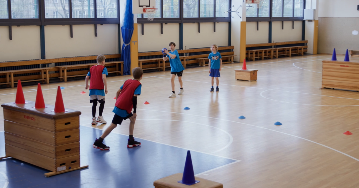 4. Abgeworfene Spieler:innen stellen sich auf eine Matte und dürfen erst zurück ins Spielfeld, wenn ein Ball im eigenen Team gefangen wird.